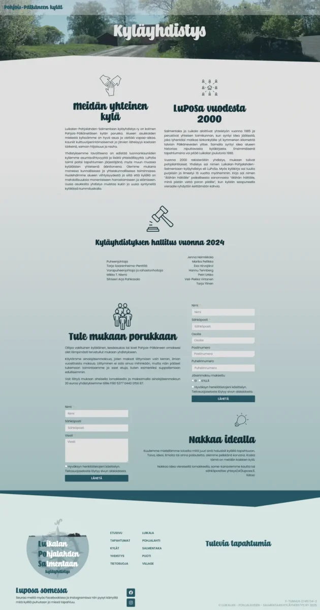 LuPoSa eli Pohjois-Pälkäneen kyläyhdistys tarvitsi verkkosivut, jotka toimisivat sekä yhdistyksen käyntikorttina että käytännön työkaluna tapahtumien ja varauksien hallintaan sekä luomaan kuvan modernista kyläyhdistyksestä.